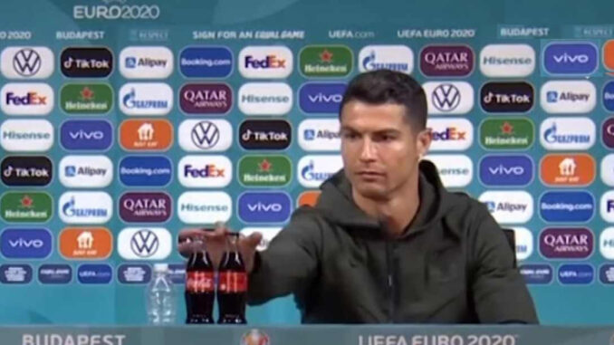 Cristiano Ronaldo dá prejuízo à Coca-Cola, durante entrevista coletiva
