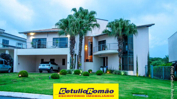 SOBRADO de 4 quartos (4 suítes completas com closet e varanda, a master com hidro), todas com lavabo na entrada, uma das suítes no térreo, Sala de Visita. Pé direito alto, Sala de Jantar, Sala de TV, Cozinha completa com armários de primeira e bancada em granito, 2 DCE completos, área de serviço, dispensa.
