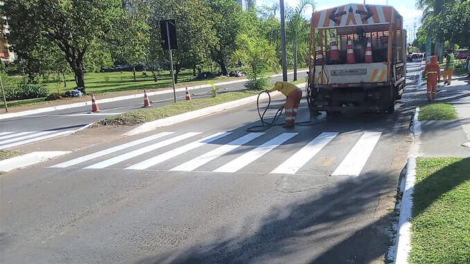 O Governo do Distrito Federal (GDF) promove, neste mês, a pintura de cerca de 230 faixas de pedestres em toda a cidade. Embora a reforma das faixas faça parte da rotina do Departamento de Trânsito (Detran), desta vez a pintura foi reforçada tendo como objetivo a volta das aulas totalmente presenciais.