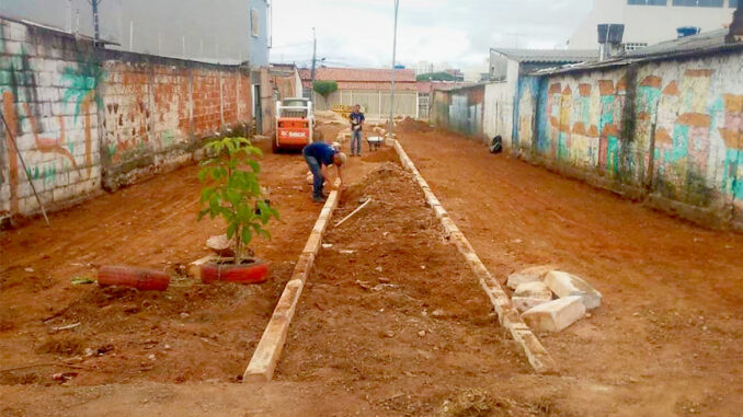 Cerca de oito pessoas trabalham no beco do Conjunto D da QNM 36, entre funcionários e reeducandos, boa parte recrutados pela administração local junto às secretarias de Administração Penitenciária (Seape) e de Justiça. Depois que máquinas limparam e fizeram o nivelamento do terreno, foi iniciada a construção de uma calçada de 55 metros de comprimento por 1,5 metro e meio de largura. “Eles trabalham rápido, a gente vê pelo tempo que levaram na reforma de outros becos aqui perto”, destaca a moradora Chris Borges, se referindo ao Conjunto J da QNM 36, já pronto. “É que a chuva não dá trégua, mas quando eles pegam o serviço, sai a jato e bem feito”, elogia.