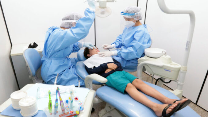 A pandemia de Covid-19 gerou a realocação de profissionais da área de saúde bucal para a testagem e vacinação. Ainda assim, em 2021, a Secretaria de Saúde (SES) registrou 275 mil atendimentos nesse setor.