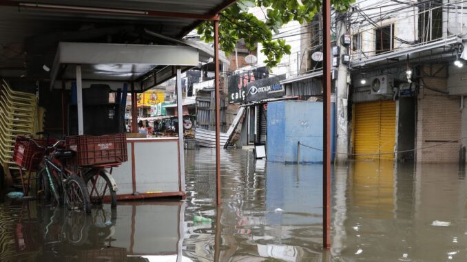 Em Mesquita, na Baixada, um homem morreu eletrocutado durante alagamento no município.