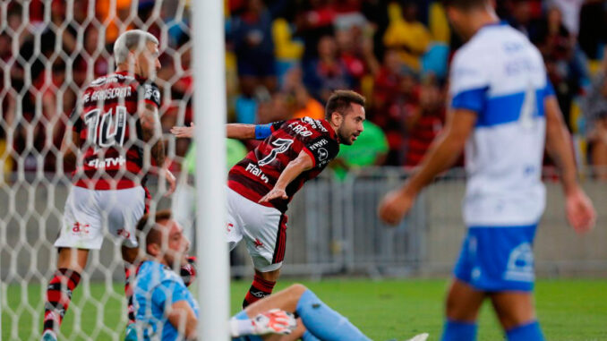 O time da Gávea ampliou o placar aos 38, quando Matheuzinho recebeu de Arrascaeta na ponta direita e cruzou para Bruno Henrique, que escorou para Everton Ribeiro deixar o seu.