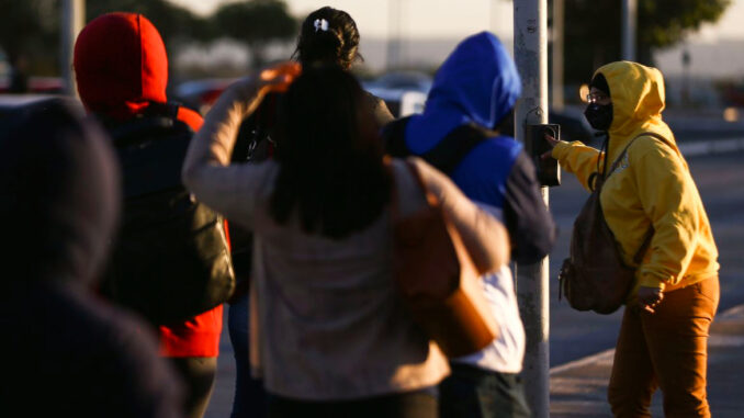 A baixa temperatura gerou o “alerta laranja” para o DF, o que indica “perigo”, sugerindo que a população fique atenta para os efeitos que o clima pode causar para o corpo e ambiente. Essa medida é usada normalmente em situações de baixa umidade, chuvas intensas ou, no caso de hoje, em que a temperatura fica pelo menos 5ºC abaixo da esperada, com frio intenso.