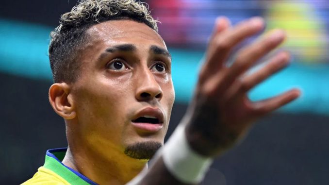 A CBF, em nota oficial, anunciou nesta segunda, 2, que o atacante Raphinha, do Barcelona (Espanha), foi desconvocado da Seleção Brasileira Principal Masculina, após conversa do médico da Seleção, Rodrigo Lasmar, com o departamento médico do clube. O motivo foi uma lesão muscular na região posterior da coxa direita do jogador.