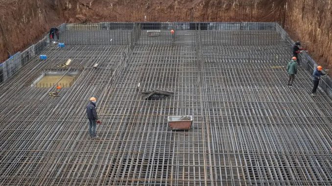 Em uma manhã recente, trabalhadores soldavam camadas de reforço de aço e colocavam cimento ao som das sirenes de ataque aéreo que tocam regularmente.