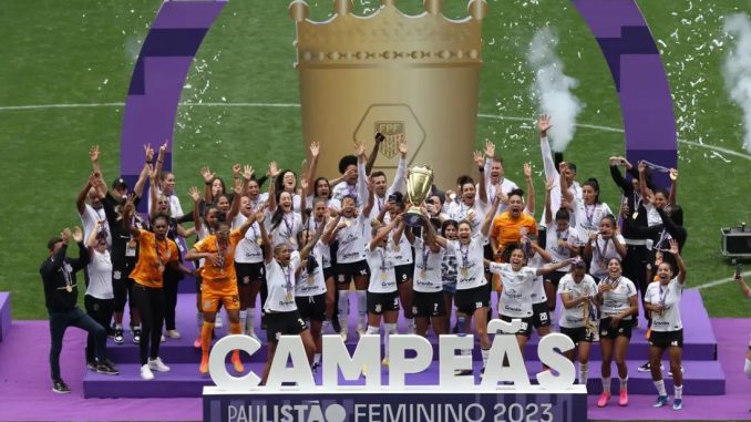 Os times femininos do Corinthians (também conhecido como As Brabas) e do Internacional (Gurias Coloradas) conquistaram o título estadual neste domingo, 26, nos Campeonatos Paulista e Gaúcho, respectivamente. As Brabas garantiram o tetracampeonato com goleada em casa sobre o São Paulo, por 4 a 1, revertendo a derrota no jogo de ida (2 a 1). Com a conquista deste domingo no Paulistão, o time feminino do Corinthians fecha 2023 colecionando taças: foi campeão da Supercopa do Brasil, do Brasileirão e da Copa Libertadores.