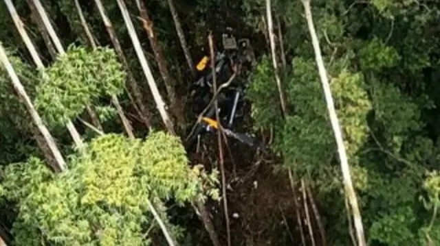 A Polícia Militar (PM) finalmente localizou, nesta sexta, 12, o helicóptero desaparecido que transportava quatro ocupantes. Os destroços foram descobertos em uma área de mata densa no município de Paraibuna, no Vale do Paraíba. Infelizmente, todos os passageiros a bordo, incluindo o piloto Cassiano Teodoro, de 44 anos, e os passageiros Raphael Torres, 41, Luciana Rodzewics, 45, e Letícia Ayumi, 20, foram encontrados sem vida. Uma imagem divulgada pela PM revela a devastação da aeronave.
