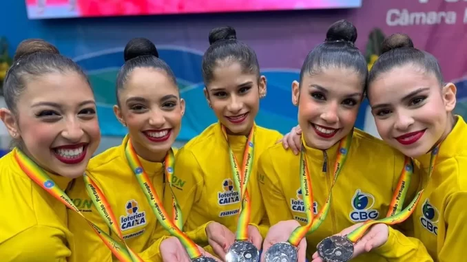 A equipe brasileira de ginástica rítmica brilhou neste último sábado, 11, na etapa da Copa do Mundo da modalidade em Portimão (Portugal), garantindo a segunda melhor nota na prova geral. Com 68.850 pontos, o time formado por Maria Eduarda Arakaki, Victoria Borges, Deborah Medrado, Sofia Pereira e Nicole Pircio conquistou a prata, ficando atrás apenas da Espanha, que levou o ouro com 70.300 pontos, enquanto a França ficou com o bronze, somando 65.050 pontos.
