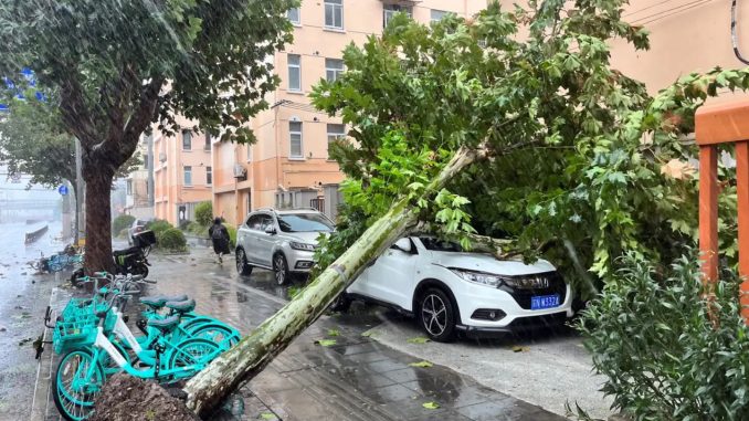 O Bebinca atingiu a cidade nova de Lingang, no distrito de Pudong, com ventos máximos de 151 quilômetros por hora, e as autoridades locais emitiram alerta vermelho.