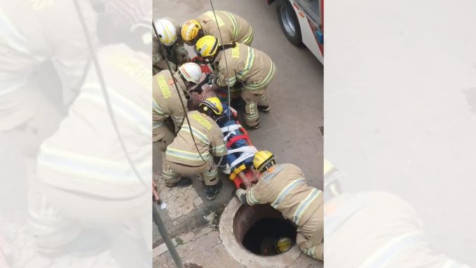 Veja momento que o idoso é retirado de dentro do bueiro: