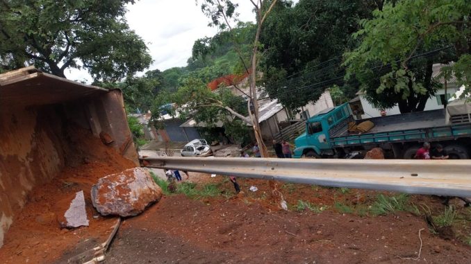 Criança morre após caminhão capotar e carga atingir área residencial na DF-150