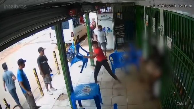 Uma mulher foi brutalmente agredida pelo marido em um bar em Santa Maria, no Distrito Federal, na tarde dessa última terça, 21. O ataque ocorreu após o homem se irritar com a roupa que a esposa estava usando, classificando-a como “curta demais”. A ação foi registrada por câmeras de segurança, que mostram o agressor jogando uma mesa e, em seguida, uma cadeira contra a vítima, além de desferir socos no rosto dela.