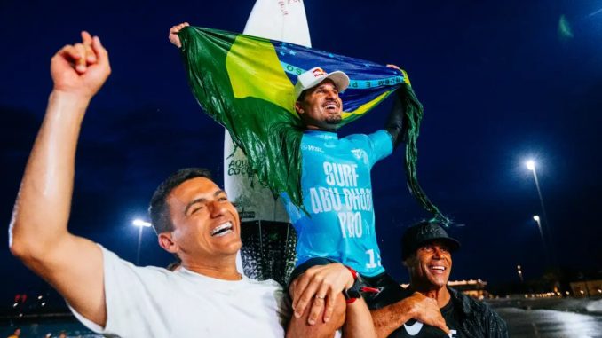 Outros dois brasileiros surfaram neste domingo, 16, nas ondas artificiais de Abu Dhabi mas pararam nas quartas de final, superados por australianos. O paulista Miguel Pupo perdeu para Ethan Ewing e o catarinense Yago Dora para Jack Robinson.