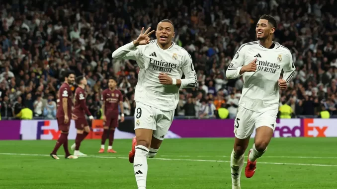 O Real Madrid venceu o Manchester City por 3 a 1, nessa última quarta, 19, no Santiago Bernabéu, e garantiu sua vaga nas oitavas de final da Liga dos Campeões com um placar agregado de 6 a 3. O grande destaque da partida foi Kylian Mbappé, que marcou os três gols da equipe espanhola e comandou a classificação diante do atual campeão europeu. Agora, o Real aguarda o sorteio da próxima sexta, 21, para saber se enfrentará o Bayer Leverkusen ou o Atlético de Madri na próxima fase.