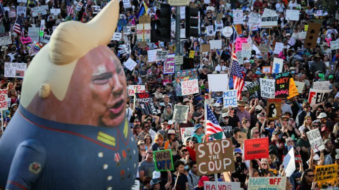Os protestos foram organizados pelo grupo 50501, número que representa as 50 manifestações nos 50 estados do país e que resultou num movimento único de oposição ao republicano.