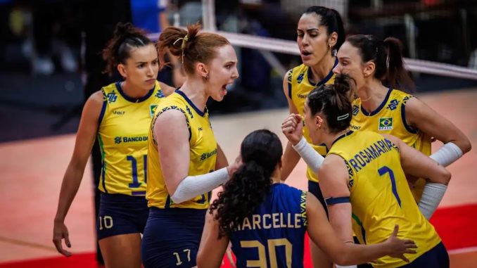 A partida foi equilibrada nos dois primeiros sets, que terminaram em 27/25 e 33/31 para o Brasil, mas a equipe comandada por José Roberto Guimarães mostrou superioridade no terceiro, fechando em 25/19. O grande destaque foi a ponteira Júlia Bergmann, que brilhou ao marcar 17 pontos e se consolidou como peça fundamental da vitória.